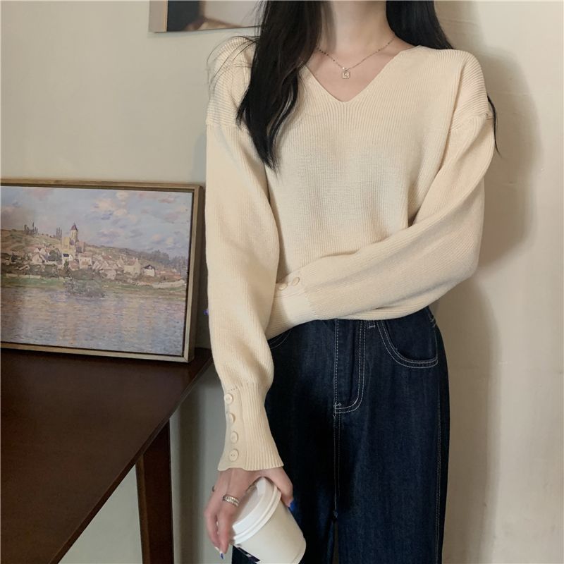 韓国版秋冬新作vネック長袖ニットカーディガン女性インナーセーター