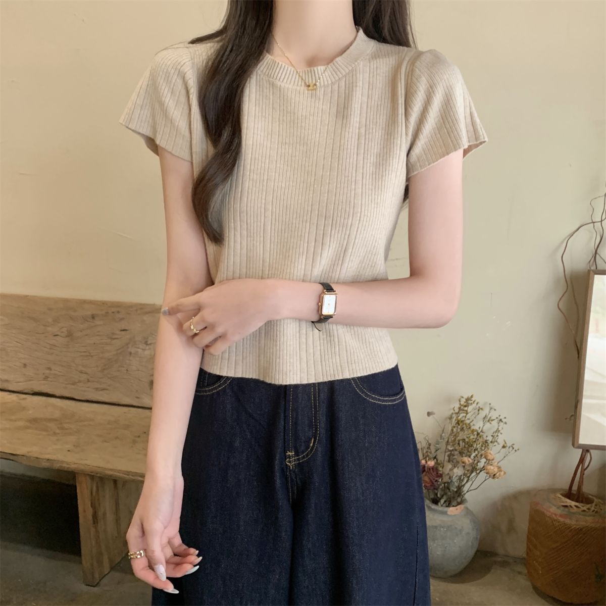 2025 新しい右肩アイスシルク半袖シャツ女性の夏のデザインニッチホットガールスリムショート大きいサイズ少し太ったトップ