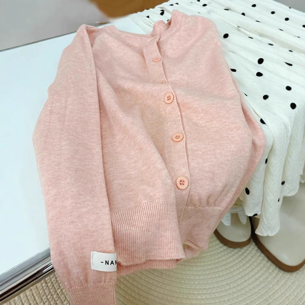 韓国版シンプル単列ボタン長袖ニットカーディガン女性春2025新作カジュアル着痩せ