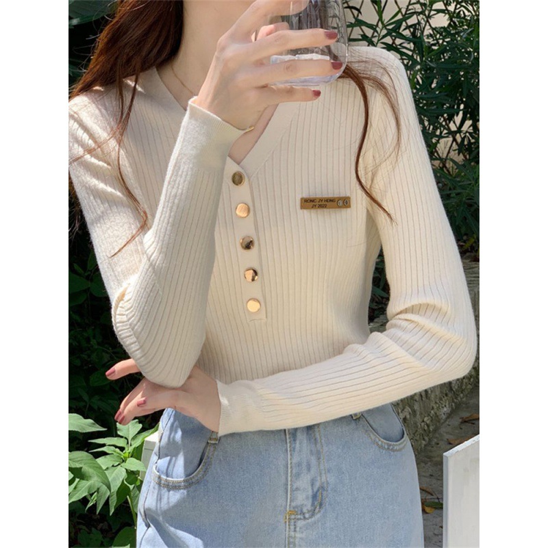 Vネックニットの底のシャツの女性の秋冬の2023年の新型の修身の中で高級感の超美しいセーターの春秋を掛けます。
