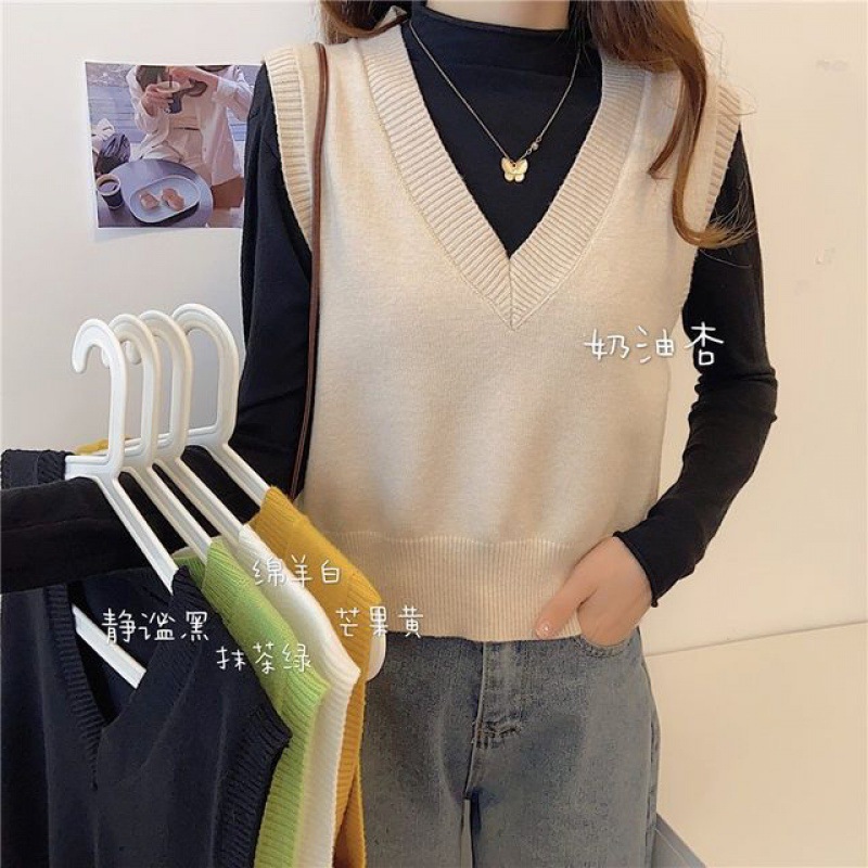 ニットのセーターのベストのベストのコートの女性の秋のvネックの短いタイプの韓国版の秋冬はやせています。