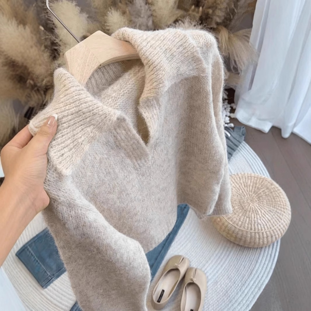 日系レトロpolo襟ニット女性秋冬デザイン感小衆ソフトモチモチ底セーターの中に襟の上着を着ます。