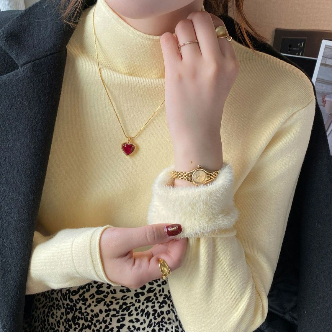 ベルベットが厚くなったベルベットのニットウェアの女性2024年秋冬半高襟セーター長袖の上着
