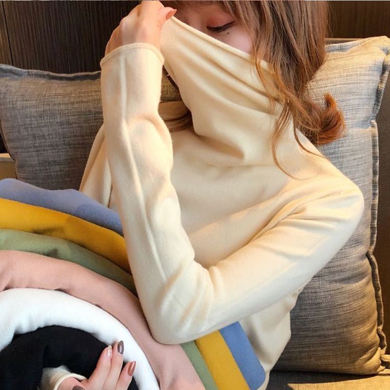 2023秋冬の新型高襟の底のシャツのtシャツの女性は身を修めてやせています。