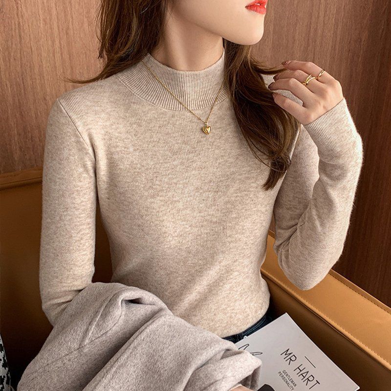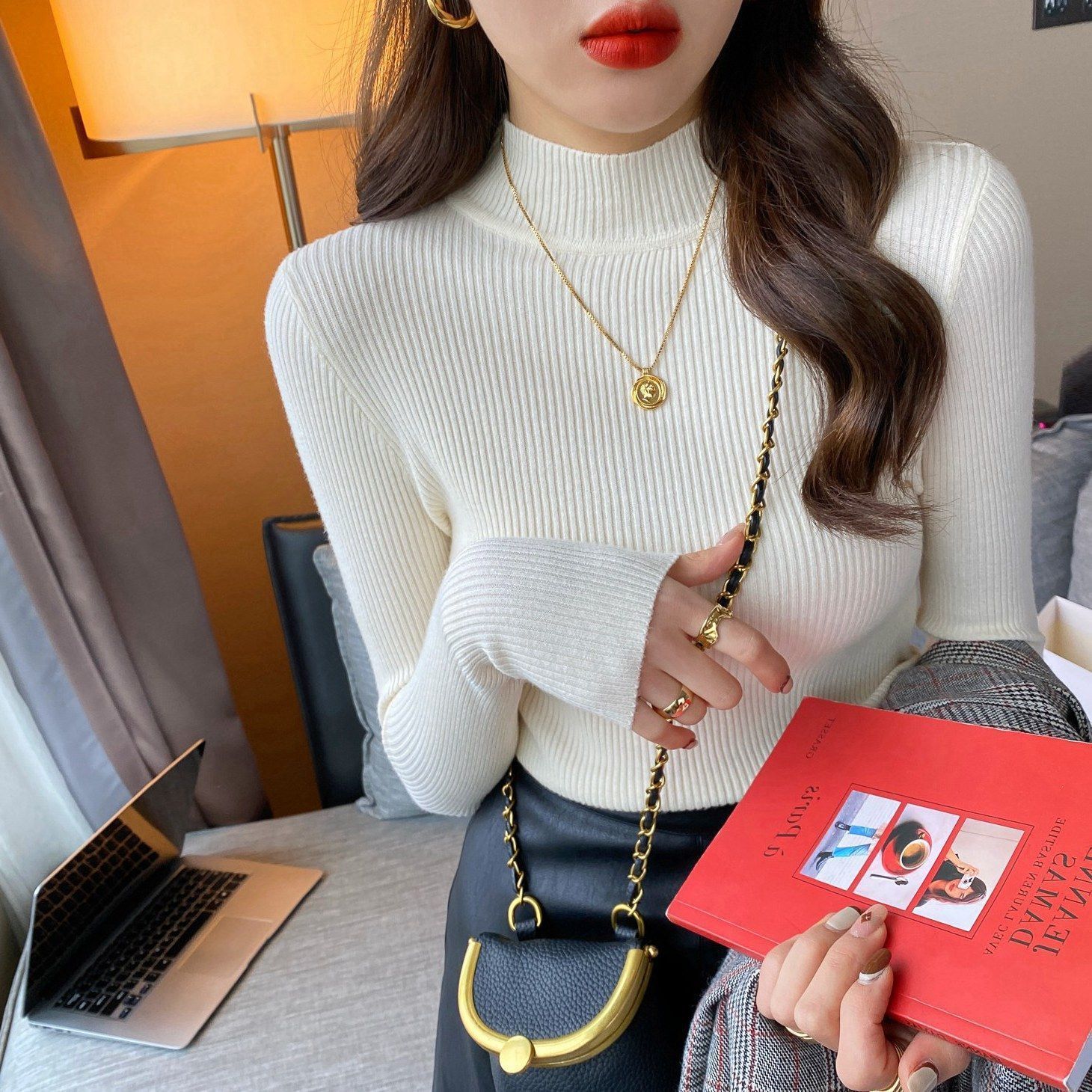 半高襟のニットの女性2023秋冬の韓国版の新型の百合の修身の底のシャツの長袖の上着のins潮