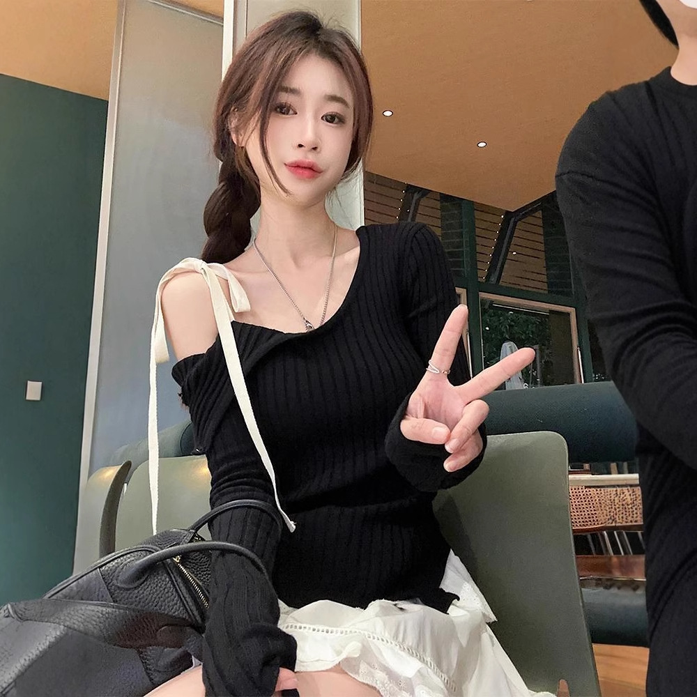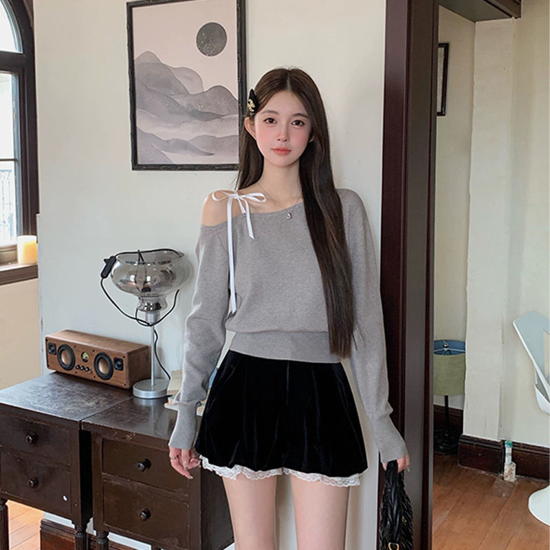 香港風chiグレーの肩のニットの女性の春秋はやせているデザイン感があります。