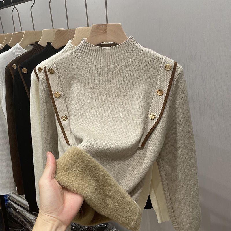 ベルベットの厚い一体ベルベットのセーター2024の新しい秋冬の保温ニットの半高襟のシャツの女性の下着