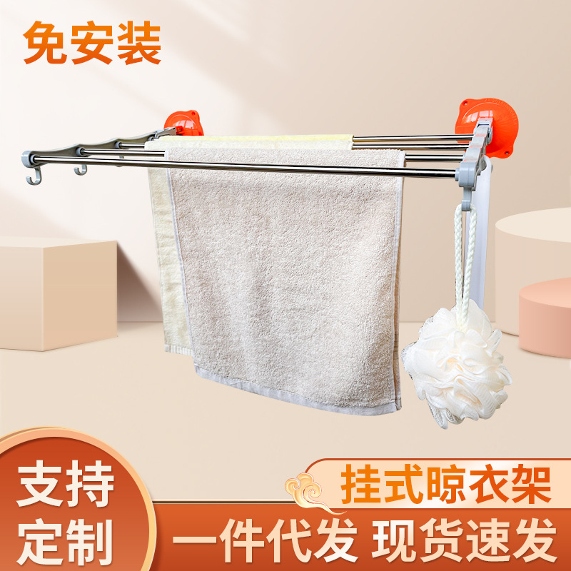強力吸盤吊り式伸縮ハンガーフック便利移動干し折りたたみタオル棚現物