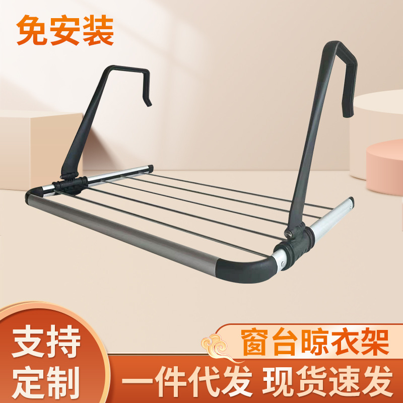 ベランダの屋外の欄干干し棚の窓辺は折りたたみ可能です。