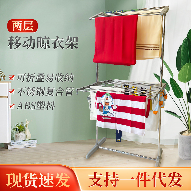 二層移動ハンガー床置き式室内家庭用干しハンガー折り畳み式ハンガータオル掛けタオル掛け