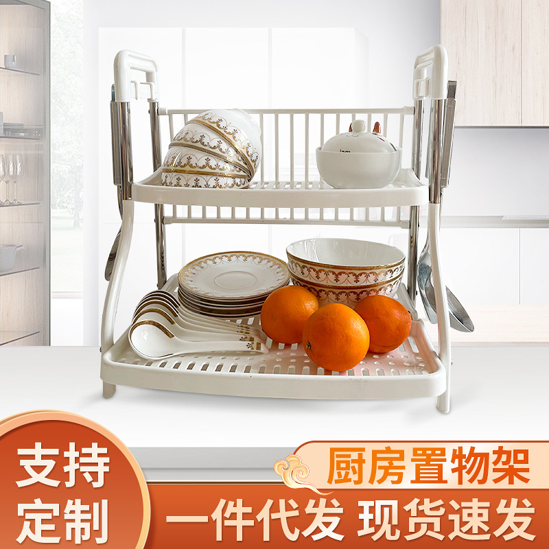 二段収納棚厨房物置棚食器・箸収納棚食器・皿・水切り棚多層プラスチック収納ケース