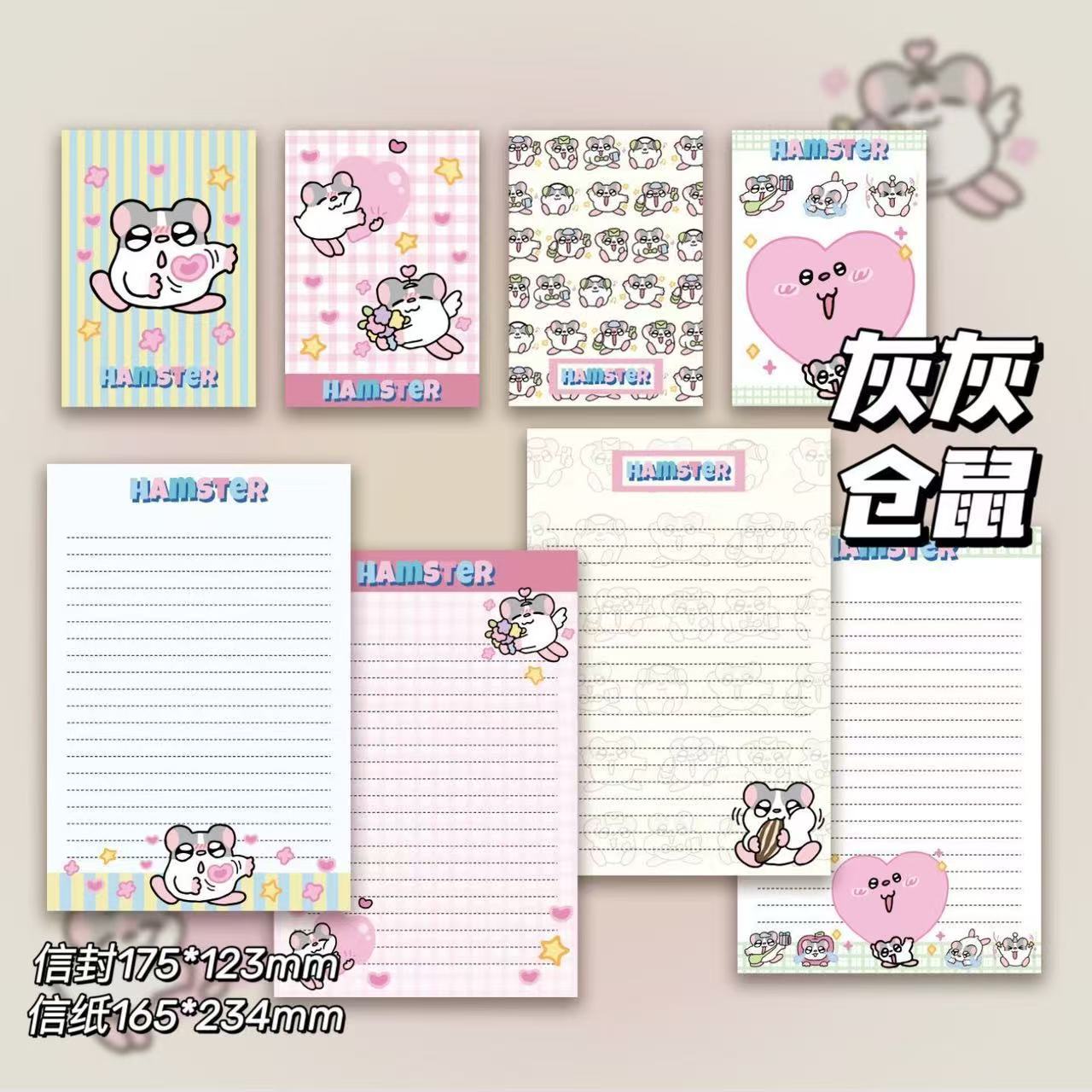 グレーのハムスター封筒キャンパスプレミアムレターペーパーかわいい漫画誕生日カード手書きギフト祝福封筒レターペーパー