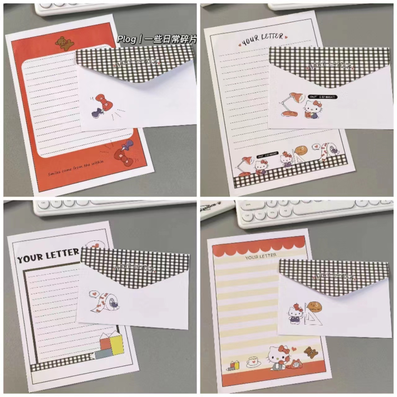 オリジナル方眼ハローニャン牛革封筒レターアニメかわいい漫画セットクリエイティブレター祝福プレゼント