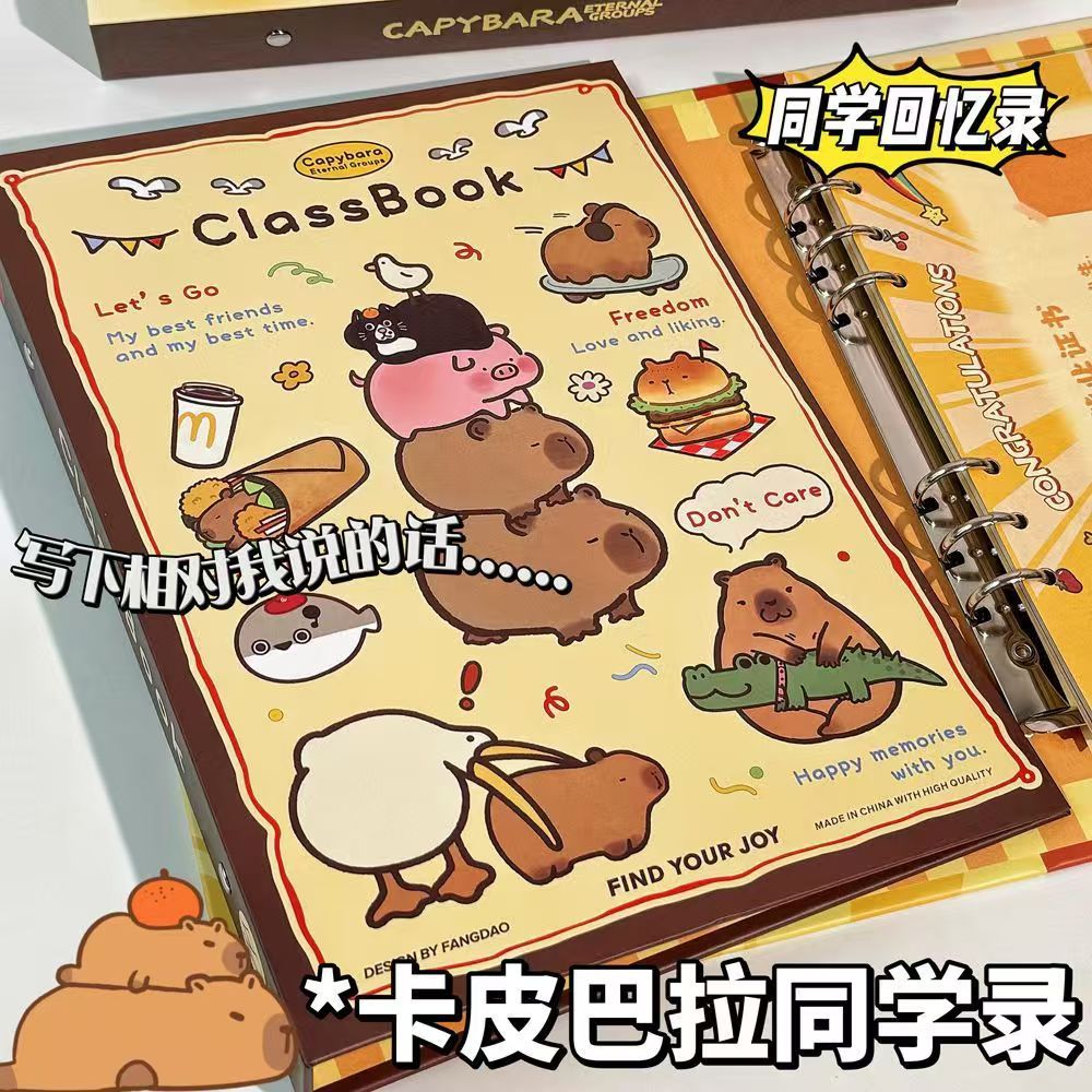 カピバラのクラスメートの記録 かわいい漫画 6 年生卒業記念アルバム 中学生用取り外し可能なルーズリーフ メッセージブック