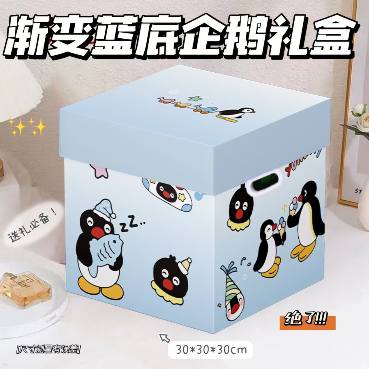 青い背景のペンギンギフトボックス空箱ライン子犬高価値ギフトボックス漫画収納ボックス親友男性の誕生日用