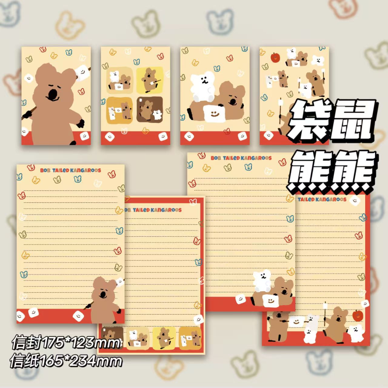 カンガルー熊熊熊高級かわいい封筒便箋漫画insプレゼントキャンパス祝福誕生日カード発行済み