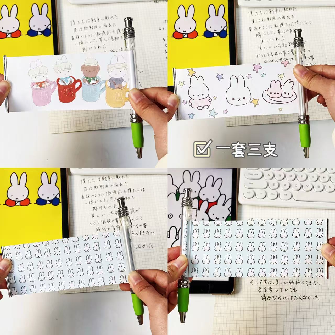 Miffyはペンを引いてかわいいです。中性ペンを押します。