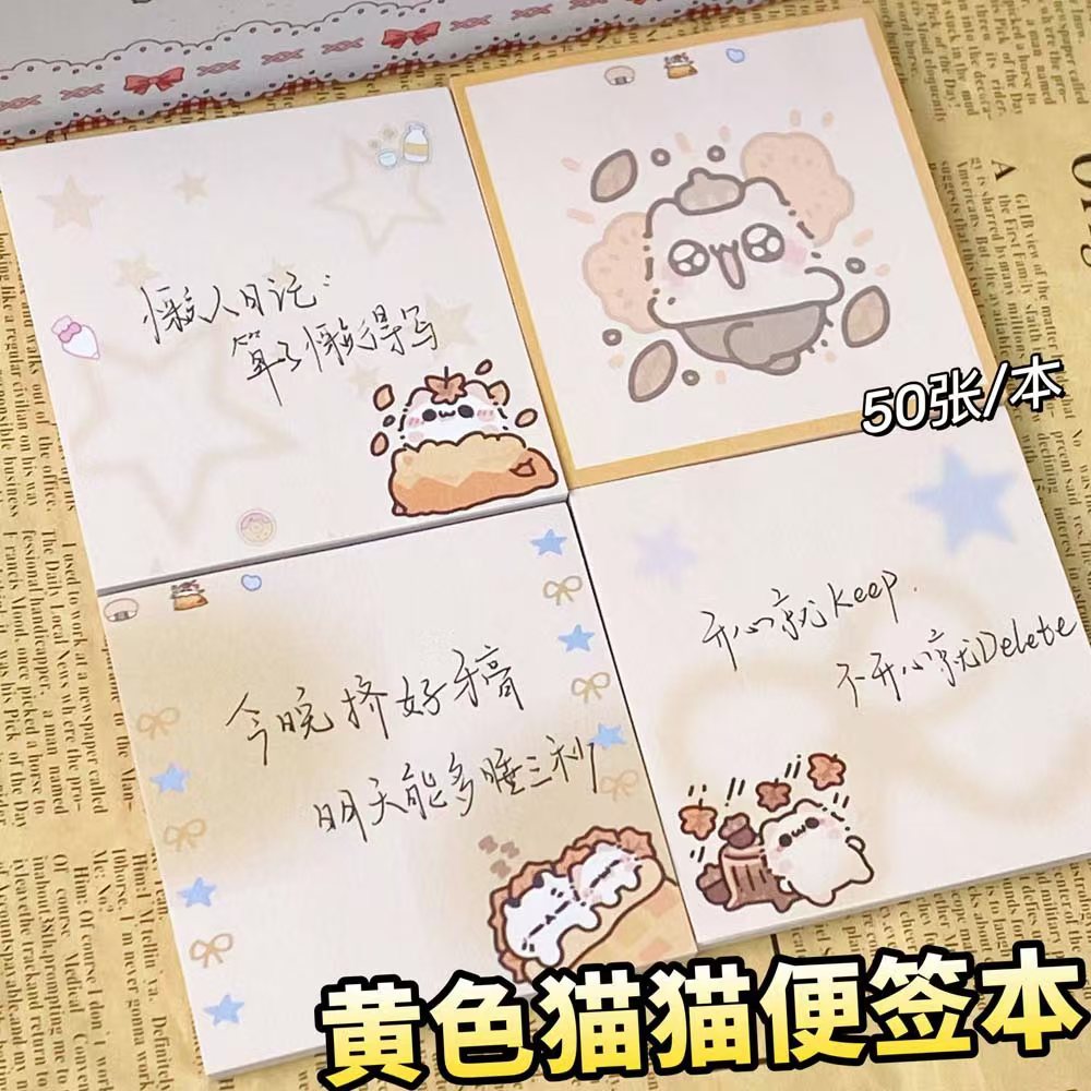 新しい黄色の猫の便箋本の学生のかわいいノートの漫画の覚書の伝言の手帳の抜粋は便利です。