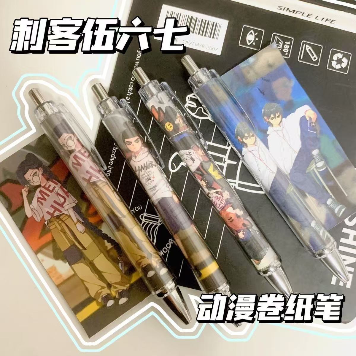 刺客伍六七アニメ同モデルのクールなプレス式中性ブラシ問題通用学生男子学生st黒筆