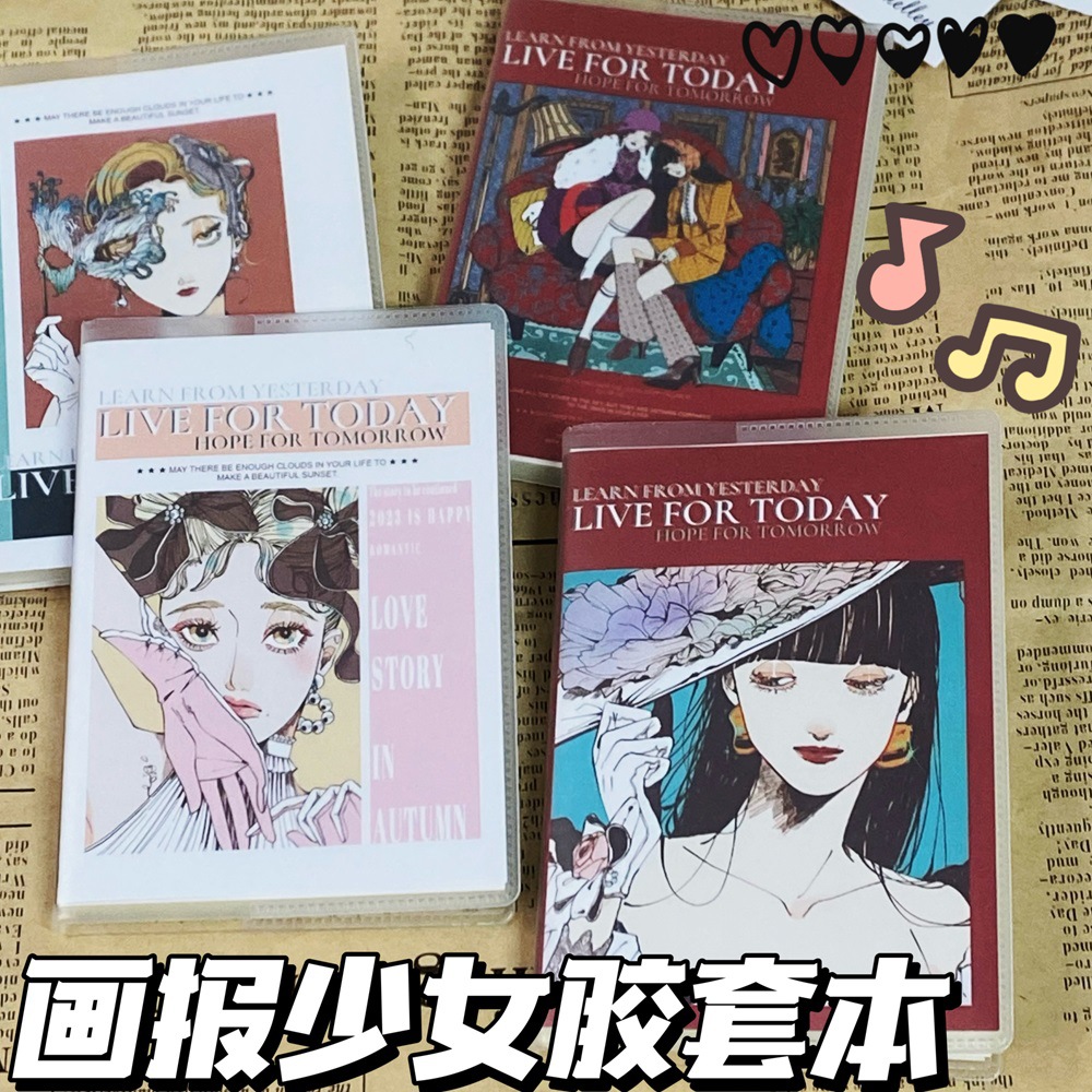 画報少女レトロアメリカンa 7ゴムカバーポケット本携帯学生ノート耐久性ミニ横線本