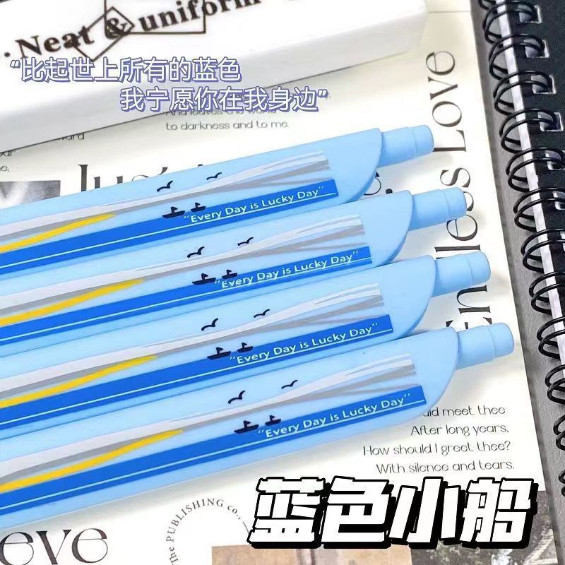 オリジナルの青いボート超細い大衆フラットペンins高颜値シリカゲル0.5速乾学生中性ブラシ問題ペン