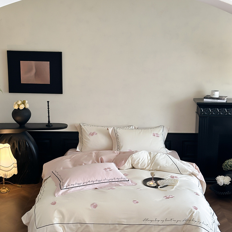 フランスバラ荘60sライゼル天糸刺繍シーツ布団カバー4点セット少女心ベッド用品1.8