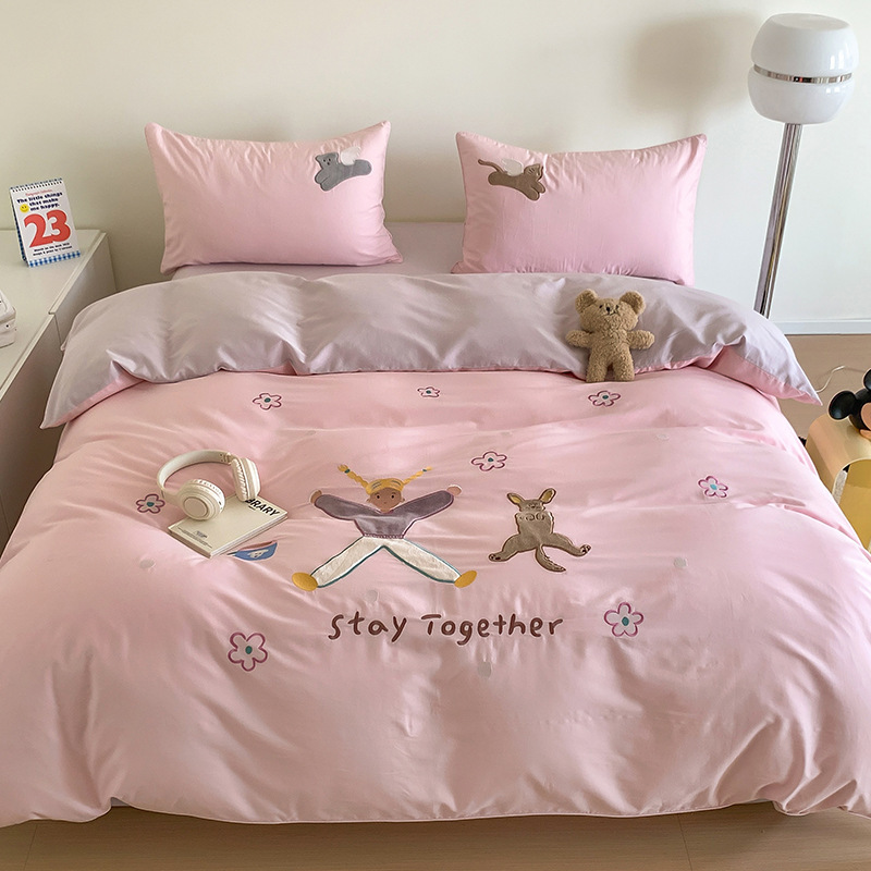韓国ins風60本綿綿功サテン水洗い綿刺繍ベッド用品4点セット少女心布団シーツ