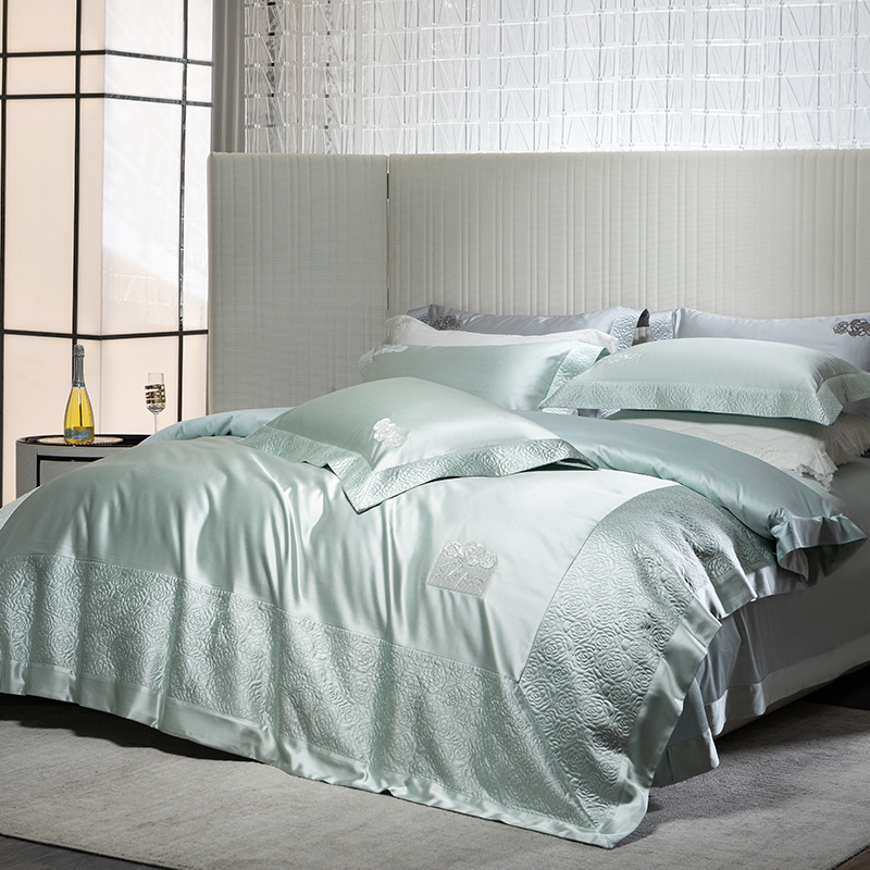 軽豪華120本錦織シルク綿4点セットシンプルな綿純色刺繍布団シーツベッドカバー1.8メートルベッド