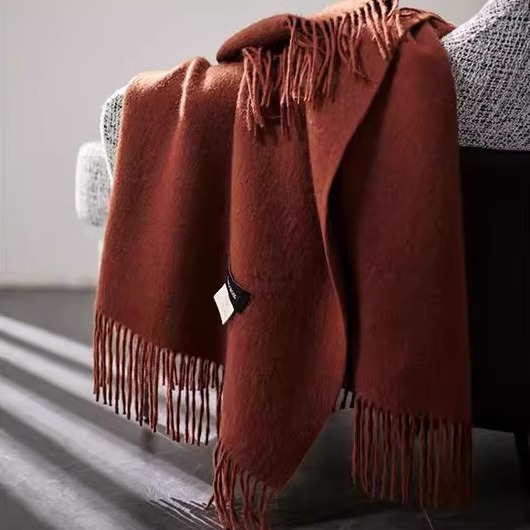 シンプルで軽くて豪華な純色のレトロな風のウールの毛布のソファーの昼寝の四季の毛布のフリンジは毛布をかけて昼寝します。