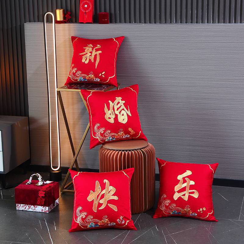 140本の結婚祝い刺繍抱枕大紅純綿結婚クッション新婚楽しい一組四人40*40cmが結婚した
