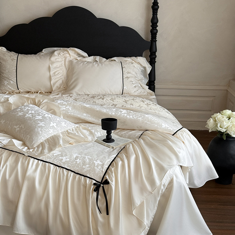 フランスの柔らかいシルク綿4点セットロマンチックな蝶ジャカードハスの葉レース布団シーツ1.8mベッド用品