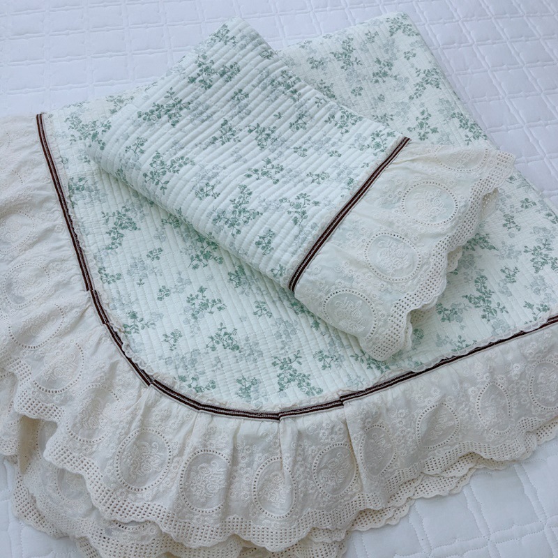 フランスの綿の小さい花のキルティングは綿のレースのベッドの蓋の3セットの綿を挟んで酵素の砂を充填してオンドルのシーツを洗います。