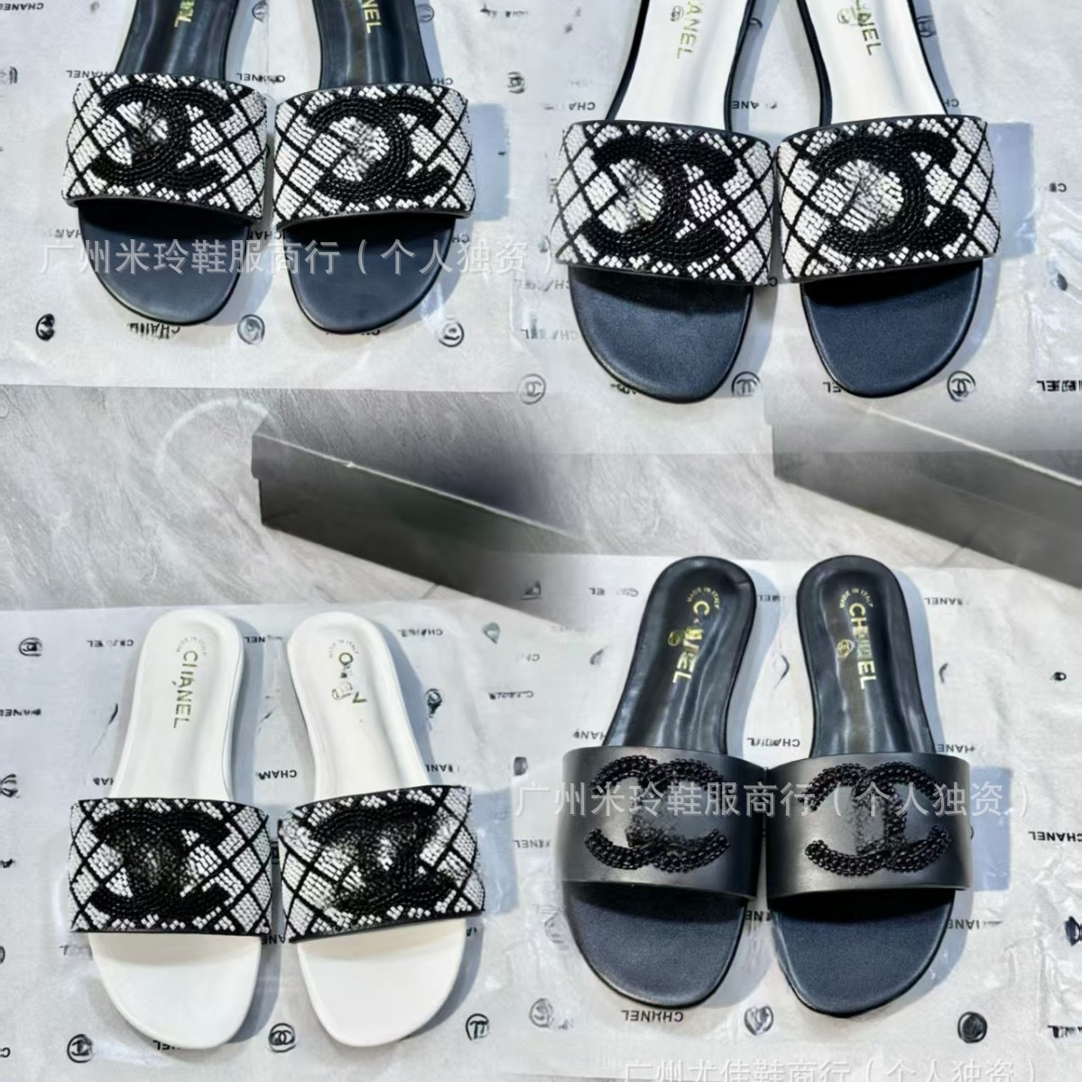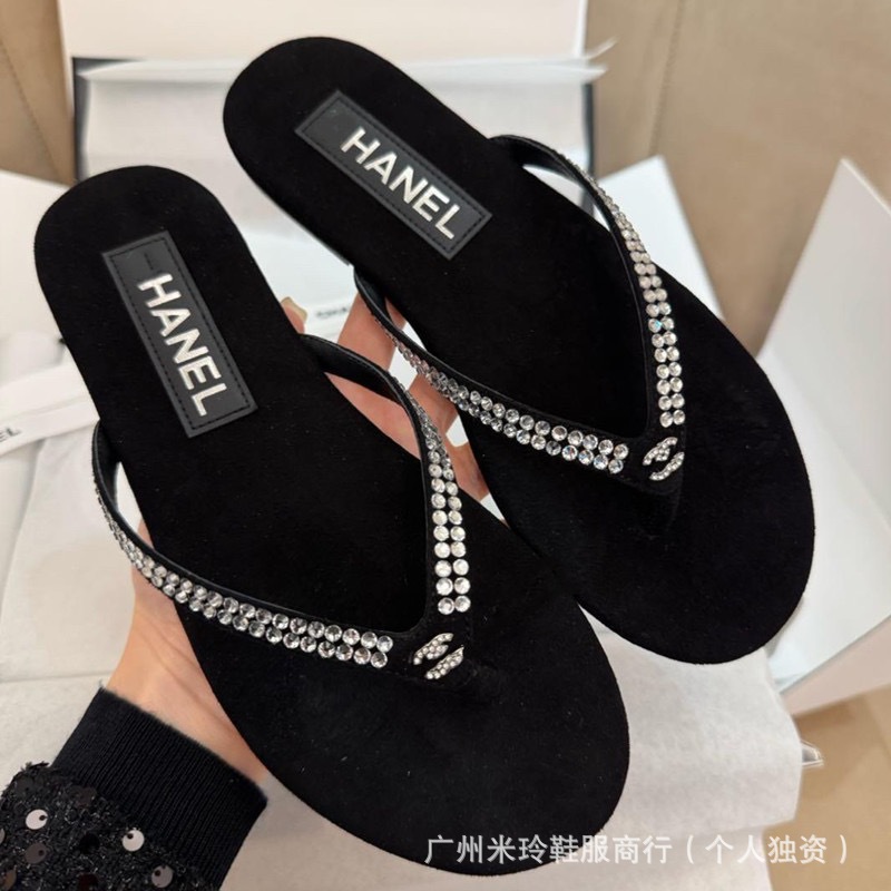 小香風水ドリル真珠人字ドラッグ女2025夏の新型ベルベットスリッパ人字ドラッグ対外貿易大サイズスリッパ