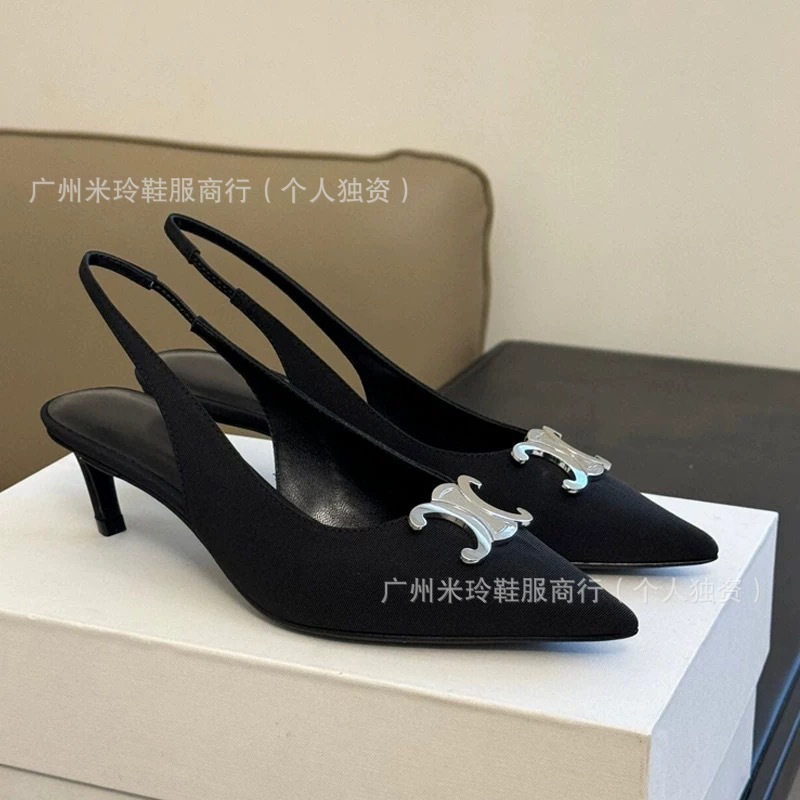 高品質凱旋門サンダルレディースハイヒールスティレットポインテッドトゥCホームバックホリゾンキャットヒールサンダル多用途工場直販L