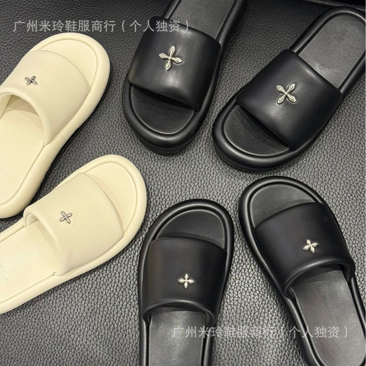 SMKクロスバッジスリッパ女性2025夏の新型ネット赤小銀標皮スリッパバッジ厚い底一字引きL