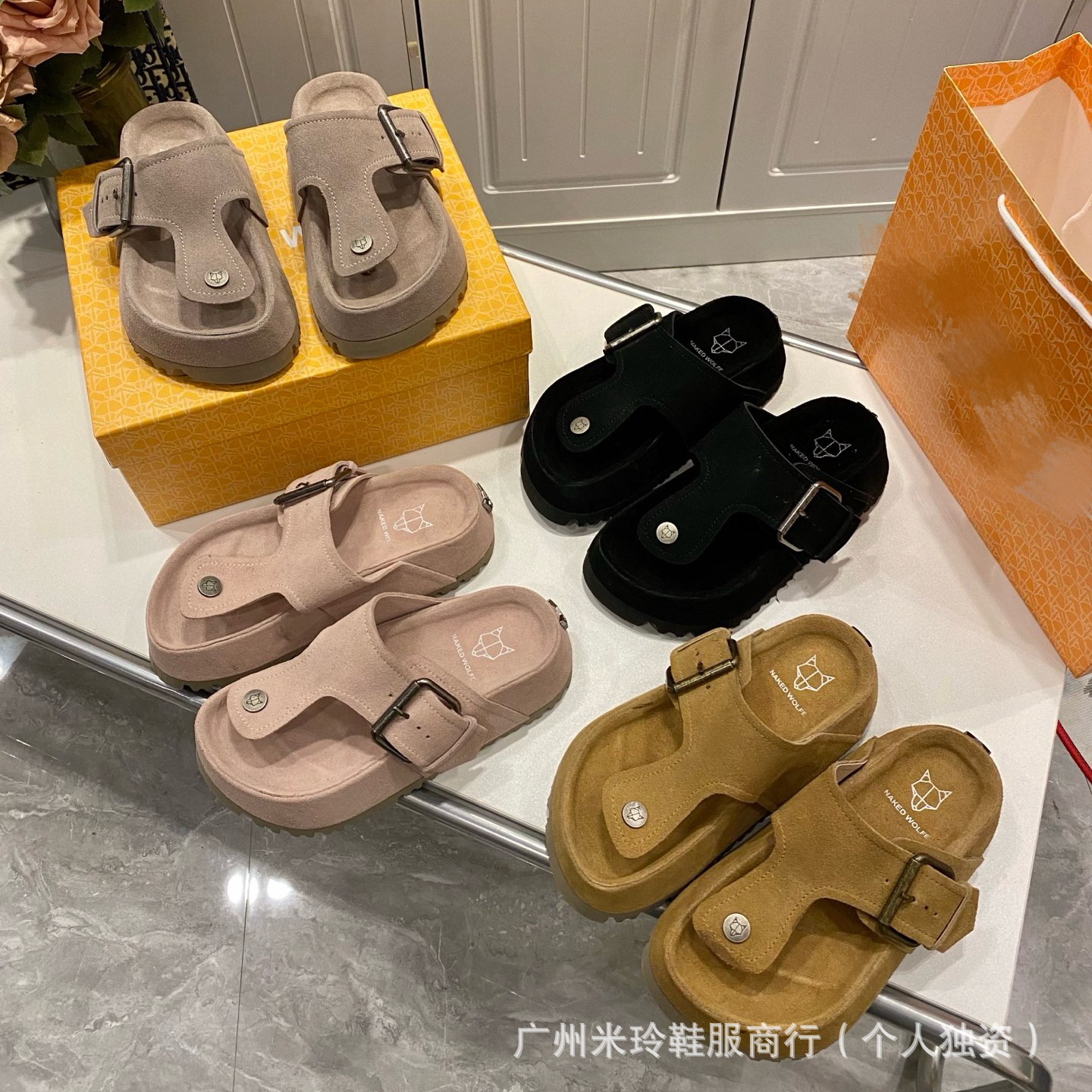 NW狼の頭の厚い底のスリッパ2025春夏の新型の大衆博ケンのスリッパの人の字は厚い底を引きずって高くなります。
