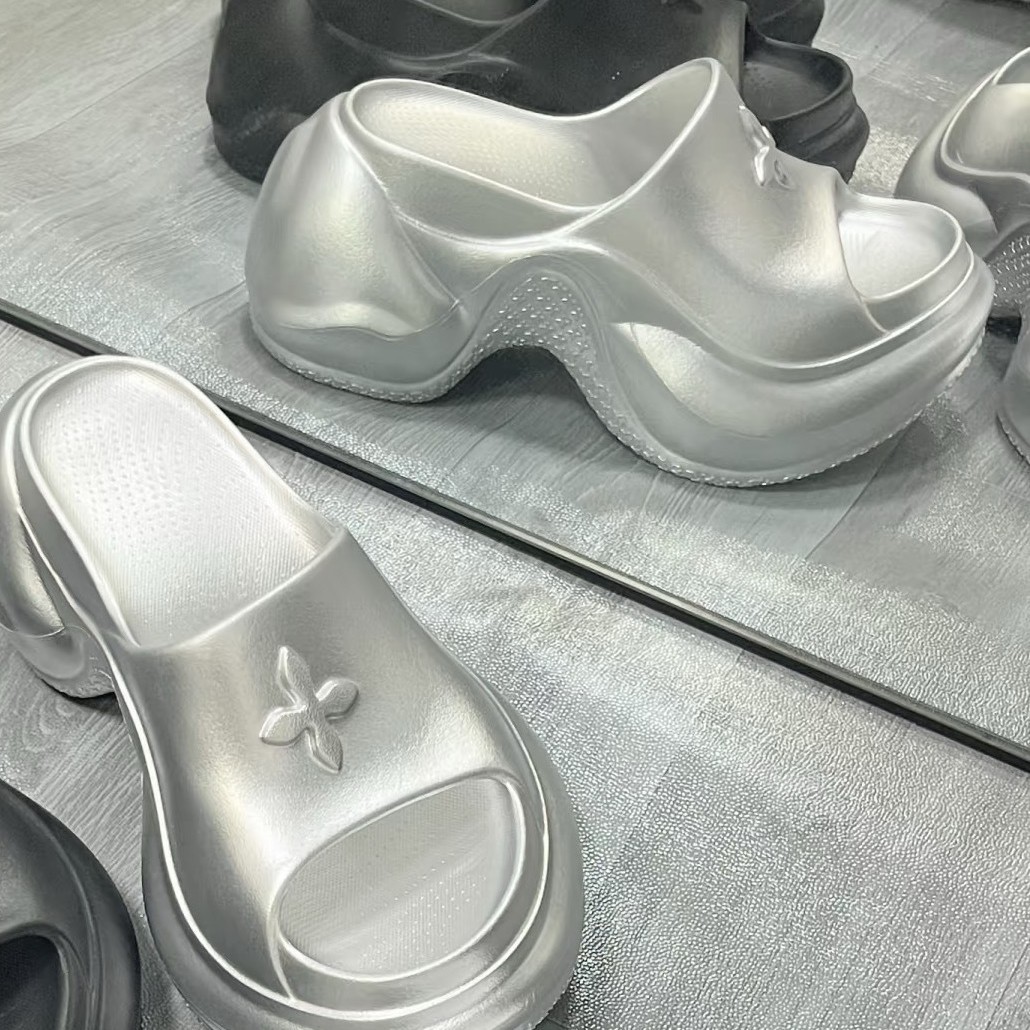 SMK银色厚底拖鞋鱼嘴拖2025新款十字花光滑漆皮面增高10厘十字花P