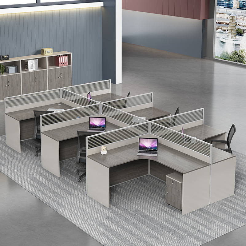 会社のデスクトップ4/6人のシンプルな現代屏風スタッフ4人のコンピュータオフィステーブルと椅子の組み合わせ