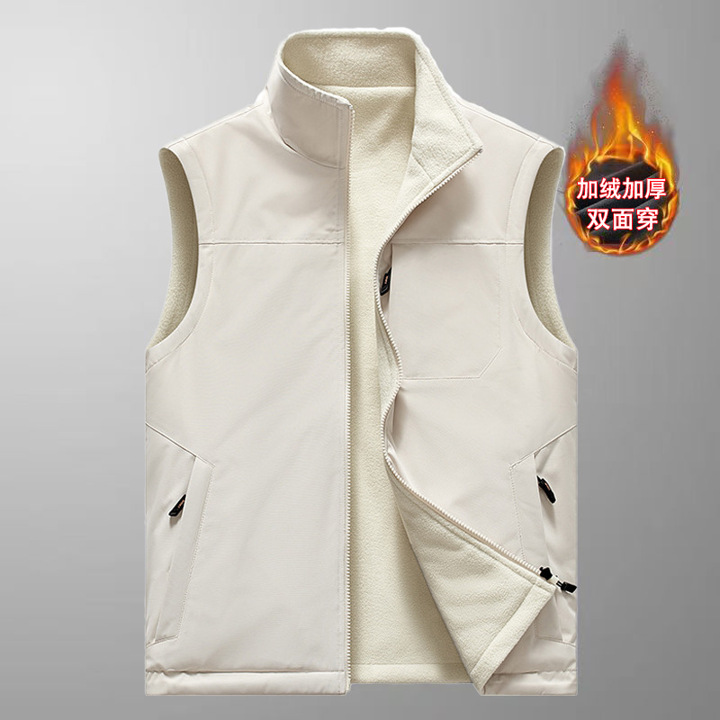 馬甲男秋冬加毛多袋工装大サイズゆるい立襟屋外撮影釣りベストコート1906A