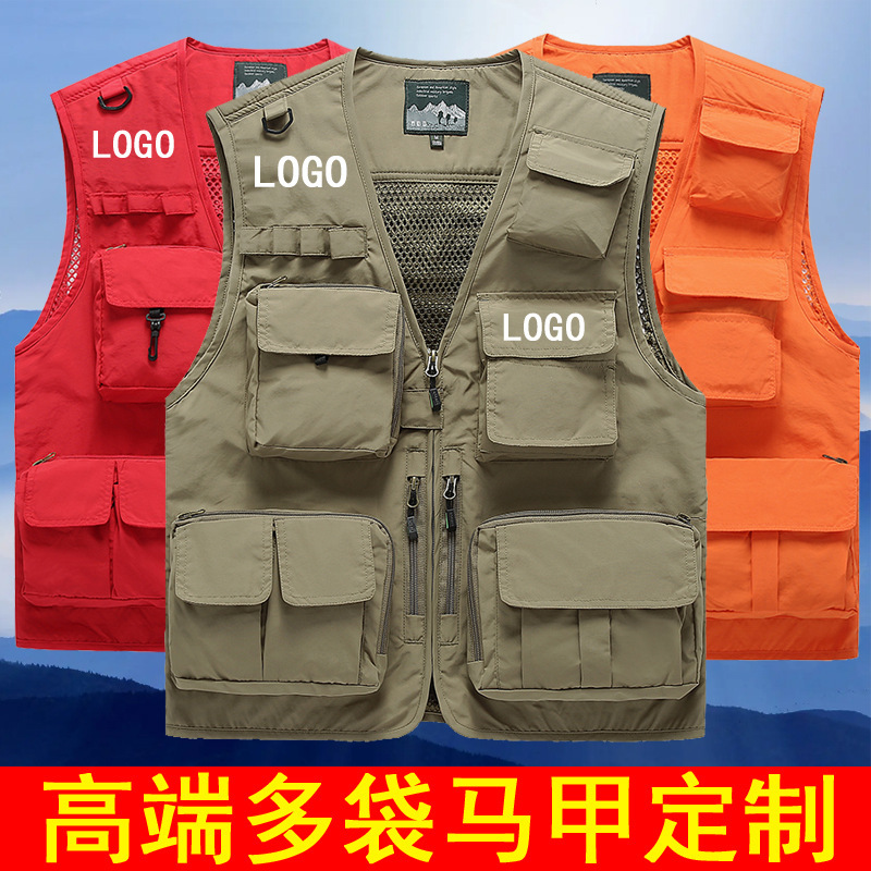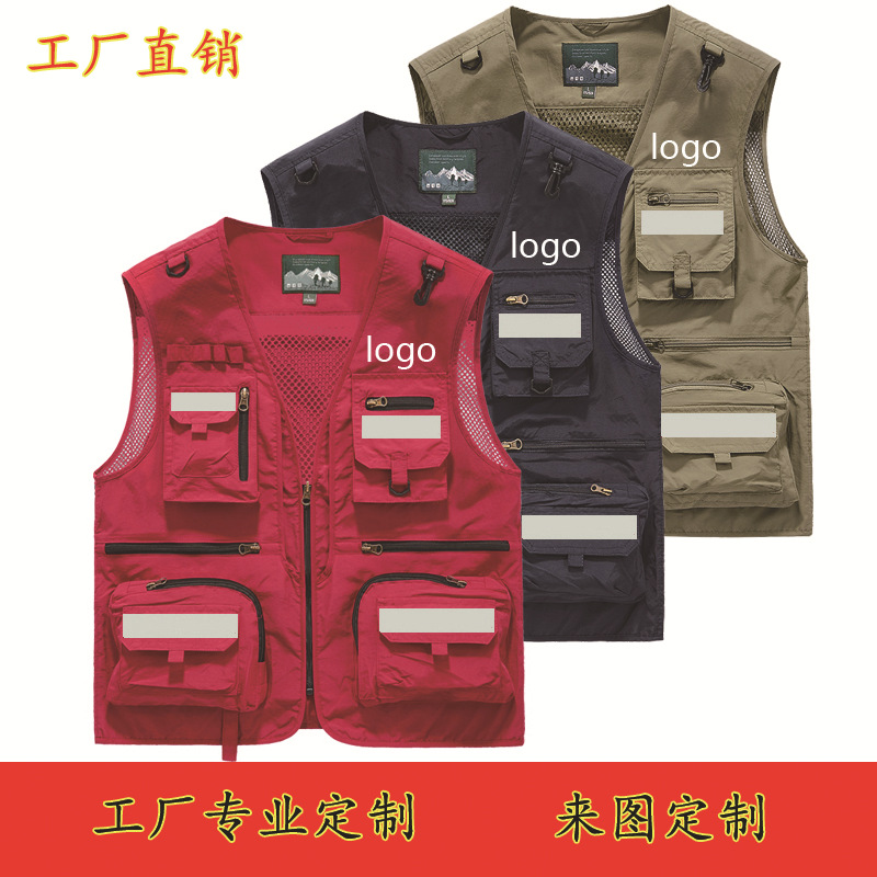 卸売り多ポケット撮影馬甲ボランティア活動速乾工作服装広告活動ベスト印字ロゴ