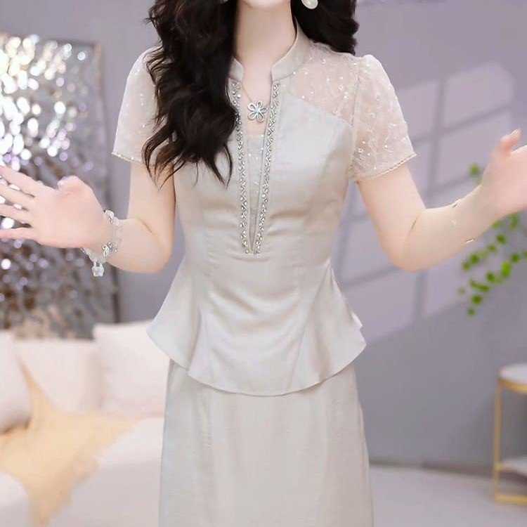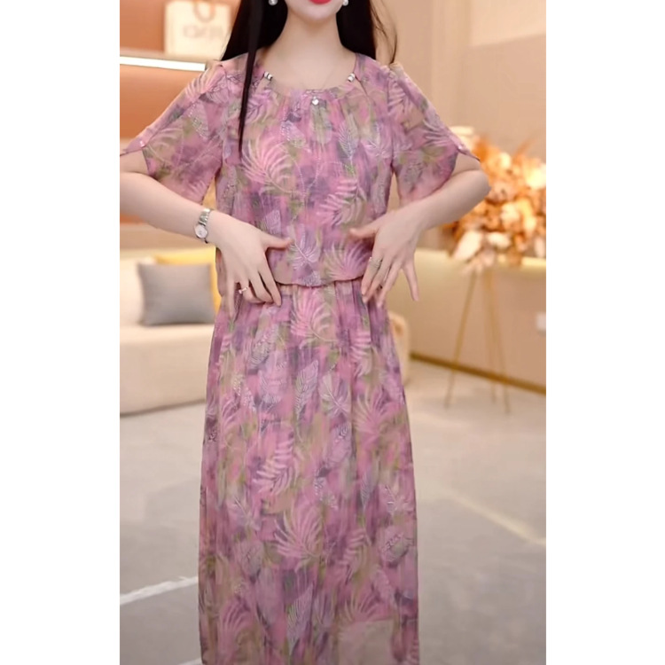 ドロップシッピング気質ママ服ツーピースセット 2025 夏のファッション西洋スタイルスリム半袖
