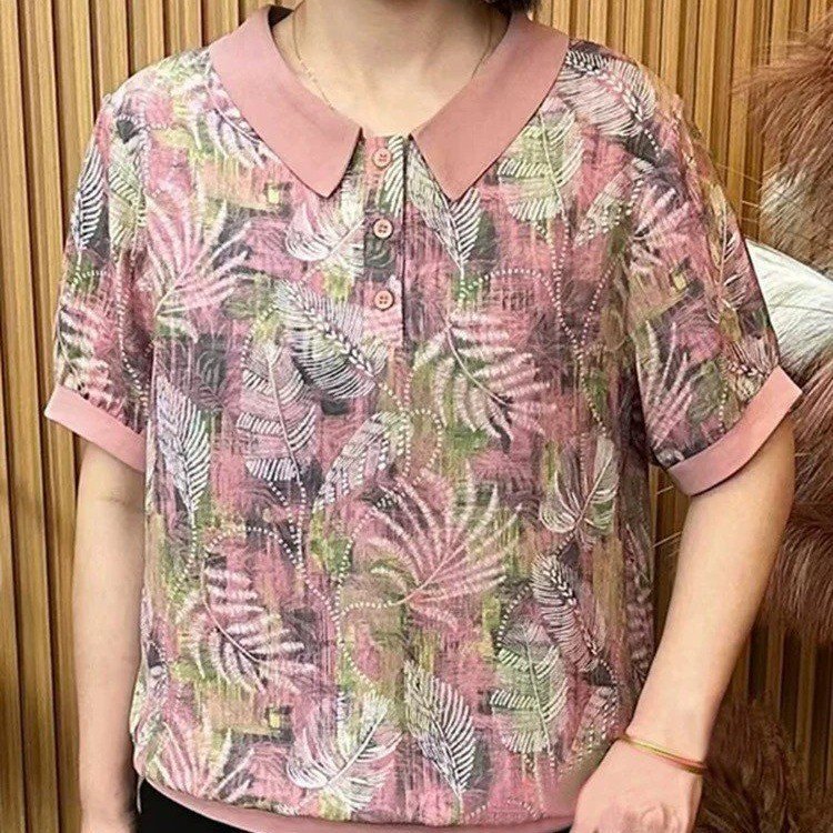 ドロップシッピングライブブロードキャストホットスタイル2025夏の新しいファッショナブルで年齢を軽減する人形襟プリント半袖トップトレンディ
