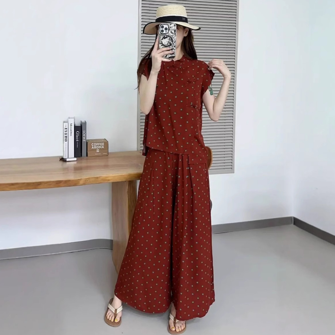 ドロップシッピング新しい中国風のレトロスタイルのライト高級スーツ 2025 夏の新しいファッショナブルなデザインのツーピーススーツ