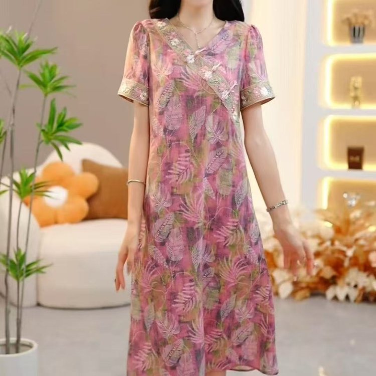 ドロップシッピング 2025 新しい夏のファッション、エレガントな気質、年齢を軽減する国民風、多用途のスリムドレス、トレンディ