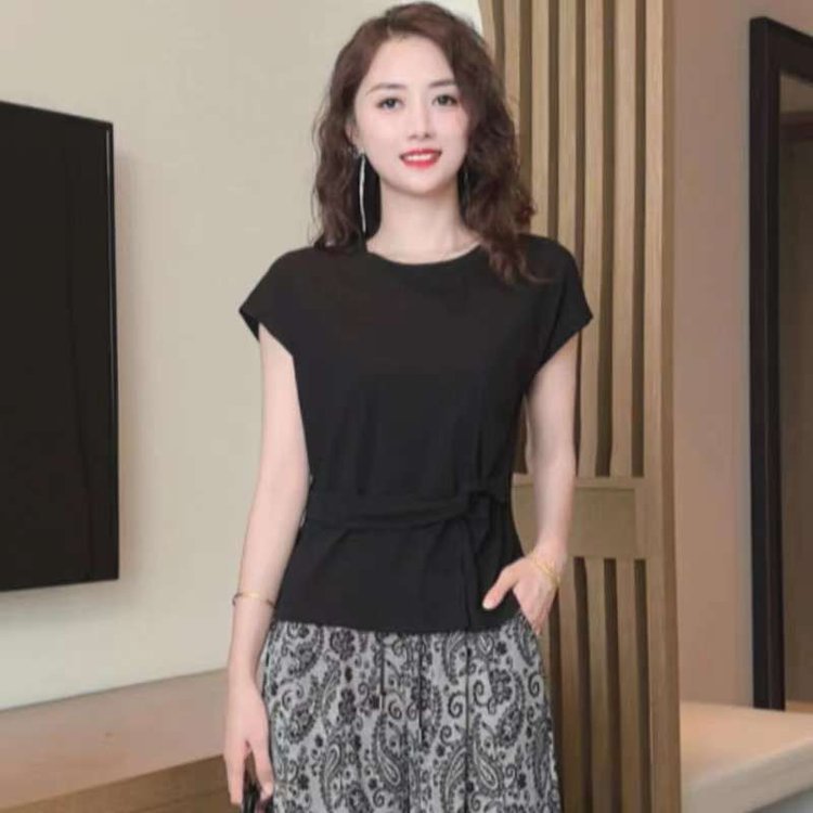 ドロップシッピング 2025 新しい夏のファッショナブルな通勤多用途気質ウエストデザインスリム半袖 T シャツ