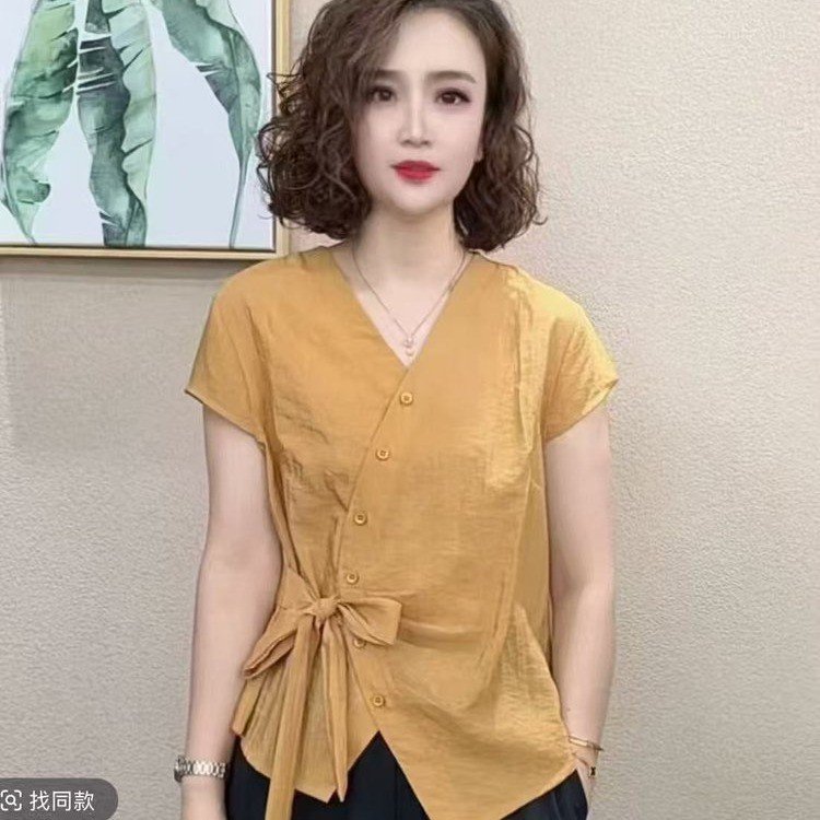 ドロップシッピングライブブロードキャストホットスタイル2025夏の新しいファッション年齢を軽減するストラップウエスト気質多用途ソリッドカラーシャツ