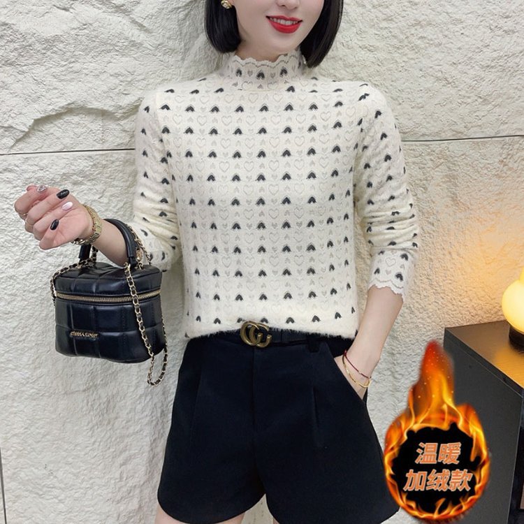 2024秋冬の新型ベルベット保温愛レースのシャツファッション気質は、痩せた半襟のシャツに合わせている