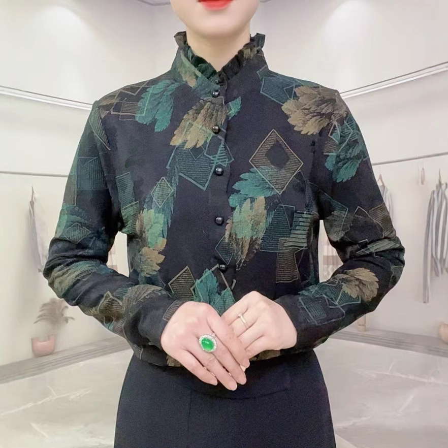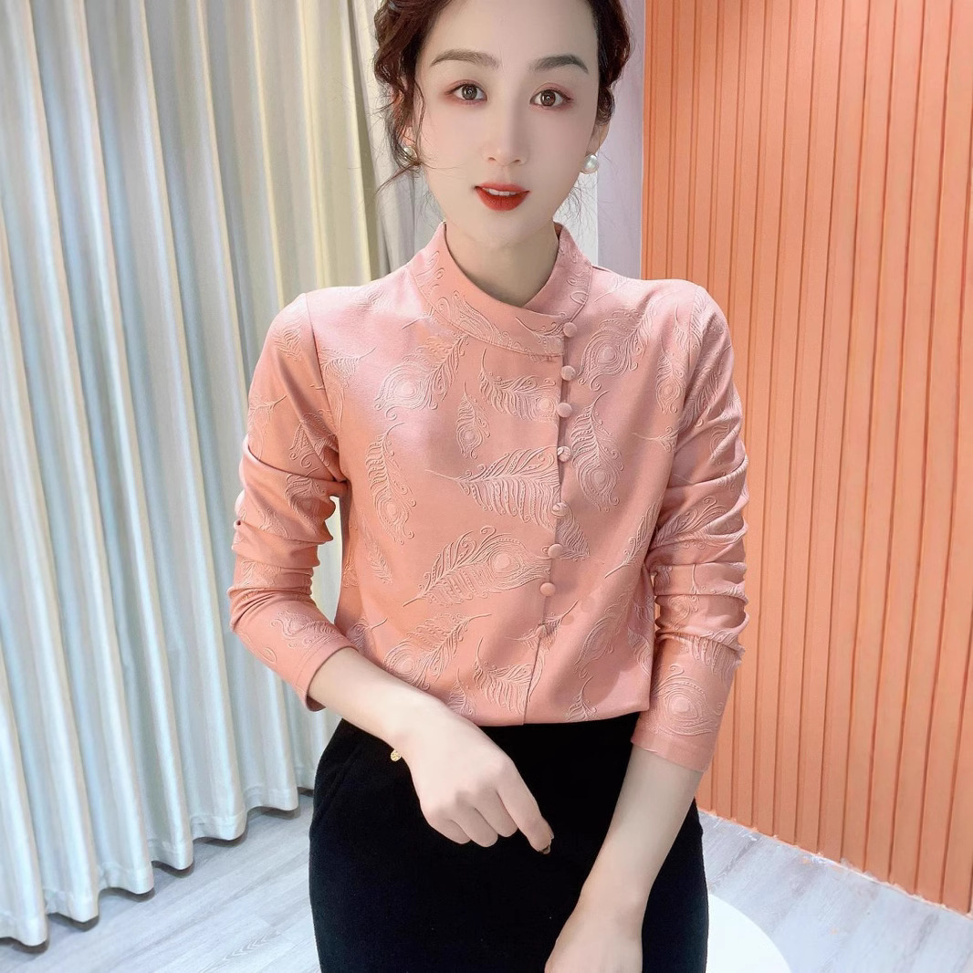 1件のネット赤爆金2024秋冬新中国式斜襟国風デザイン感保温シャツ上着