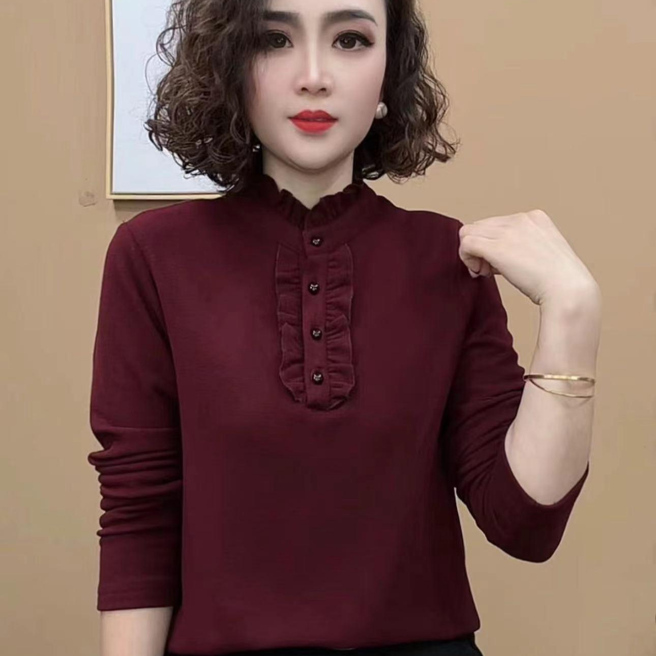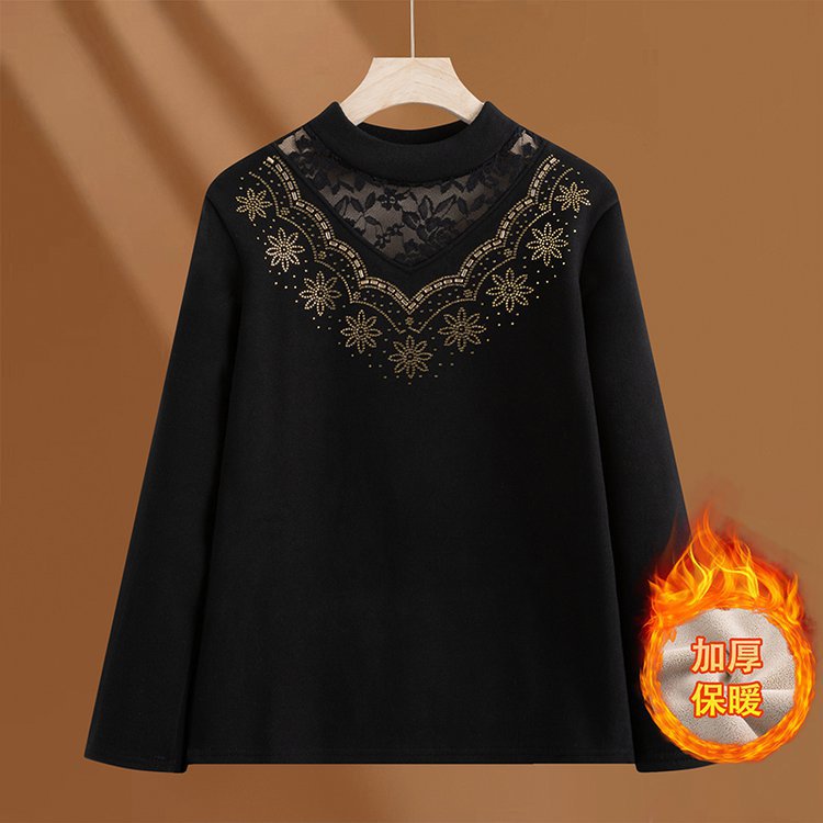 2024秋冬新作ベルベット保温レースシャツファッション透かし彫り減齢気質百合純色シャツ上着