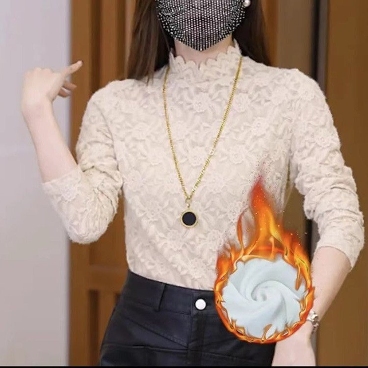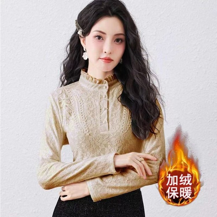 ネットの赤い爆発物の1件の代理の2024秋冬の新型のベルベットは厚い半高襟のレースの底のシャツの気質の上着をプラスします。
